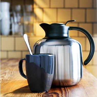 從水壺里倒出熱水到杯子里。H4n錄音