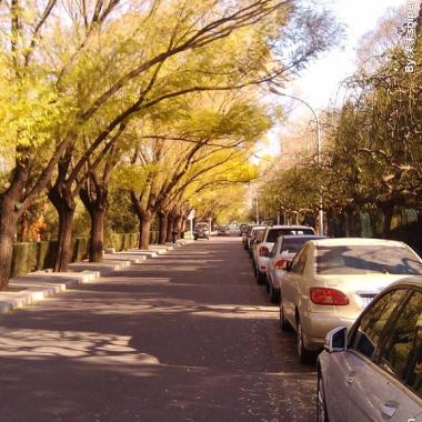 在刮風(fēng)的秋日,在街道上散步。