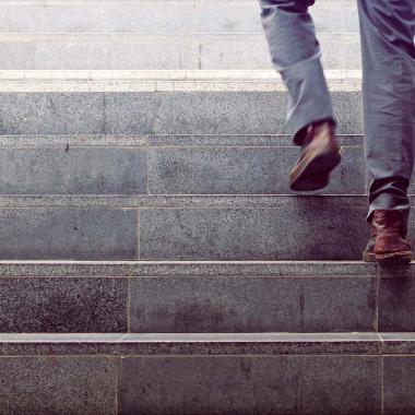 在金屬樓梯步行