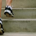 高跟鞋在瓷磚地板上的腳步聲