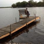 在碼頭跳入水中,隨后游泳。