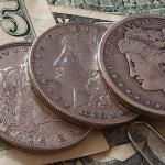 很多硬幣灑落地板