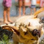 小狗在抖落身上的水