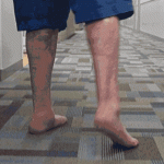 一個人在室內(nèi)地板上拖著一只腳行走的腳步聲。